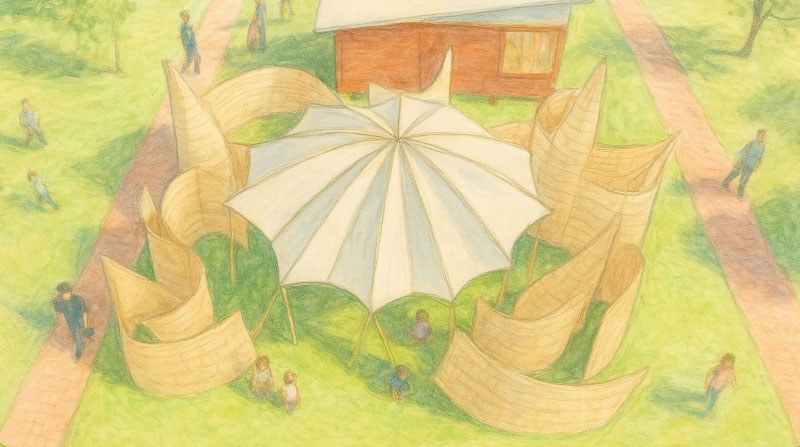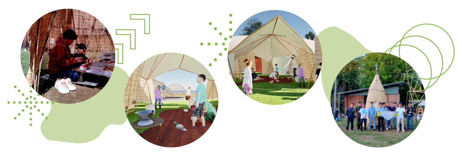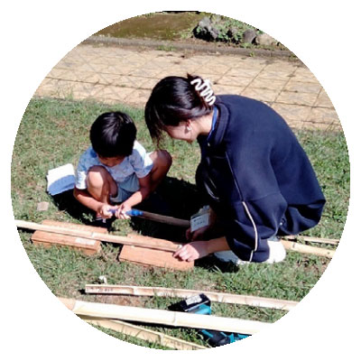 竹や、わら、すだれを使い、自由な形でパビリオンをつくります!