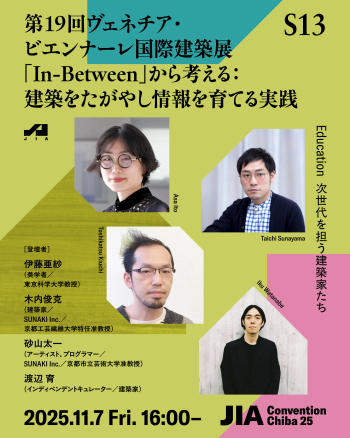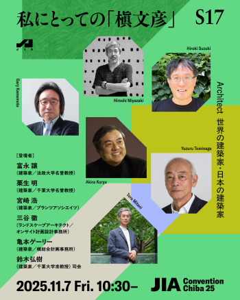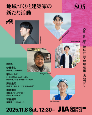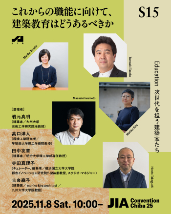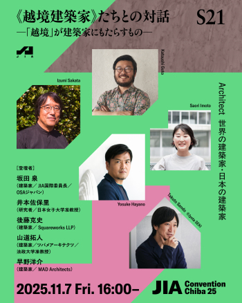 すでに「越境」を実践している建築家たちは、職能、職域を越境すること、また越境がもたらすものについて、どのように考えているのでしょうか。大会テーマ「せんのちから」は、〈持続性をもつ好ましい社会〉の実現に必要な、多様な知見、職能、技術の融合を目指すものです。《越境建築家》たちとの対話を通じて、私たちが持つべき「せんのちから」を探してみたいと思います。