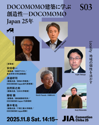 本企画ではDOCOMOMO Japan設立から近年におよぶDOCOMOMO選定建築物の系譜を振り返り、モダン・ムーブメントの建築に込められた先達の建築家たちの創造性に学ぶとともに、日本建築家協会(JIA)とDOCOMOMO Japanの関係や、歴史的に優れた建築物の今後の望ましいあり方について考えます。