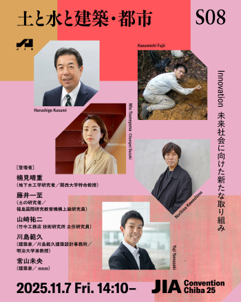 本企画では、こうした視点を共有する建築家、都市研究者、土壌学者、技術者など多分野の登壇者を招き、それぞれの実践や研究を通じて、建築が「土」や「水」といかに関わりうるか、そしてそれが都市環境とどう接続しうるかを考察します。また、国内外の先進的な取り組みを通じて、日本における環境建築の今後の展望についても議論を深めます。