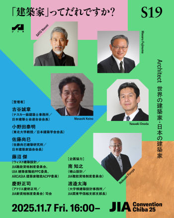 本企画では、建築設計の最前線で活躍している方や海外で活躍している方、建築教育に携わる方にそれぞれの「建築家」像を語っていただき、期待される職能(役割)について、海外事例を交えた議論を行い、今後の日本における「建築家」の必要性と職能、さらには制度化への可能性について考えます。