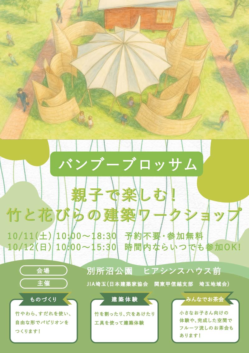 2018年10月06日(土)、07日(日)、さいたま市営別所沼公園内ヒアシンスハウス前広場にて行われた、JIA埼玉のWS(ワークショップ)のイベント・レポートを公開しました。