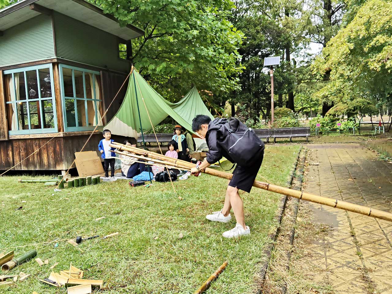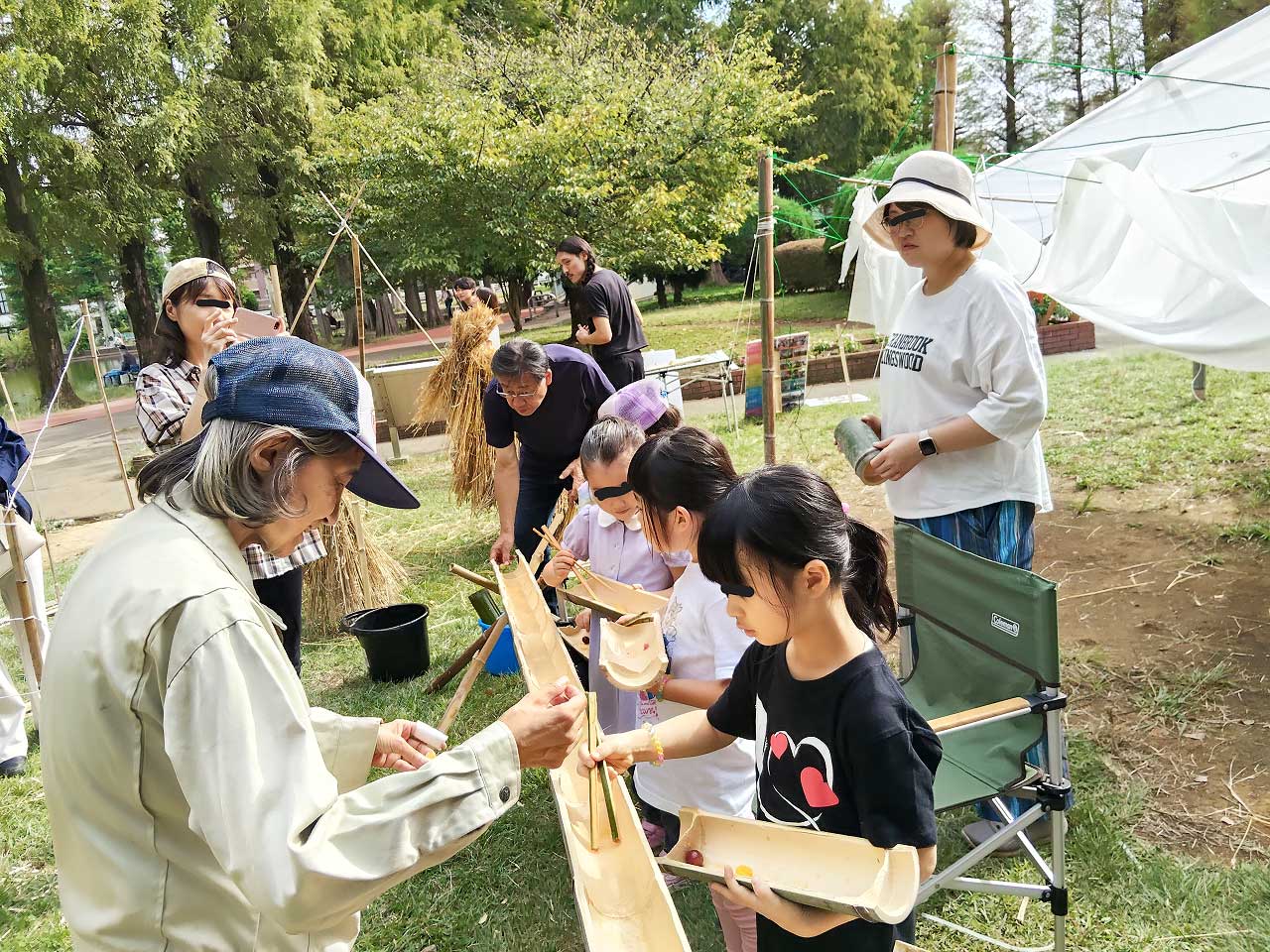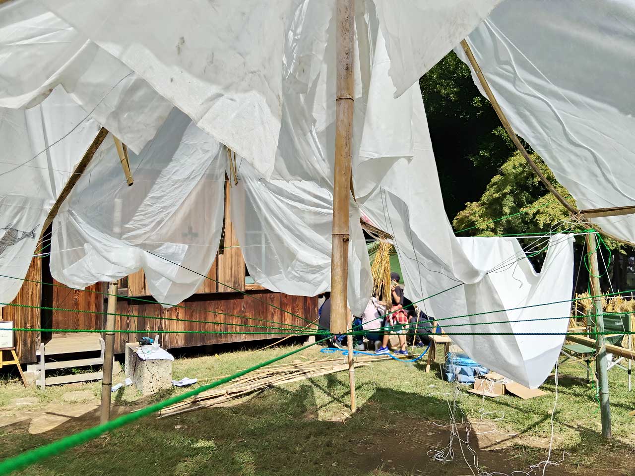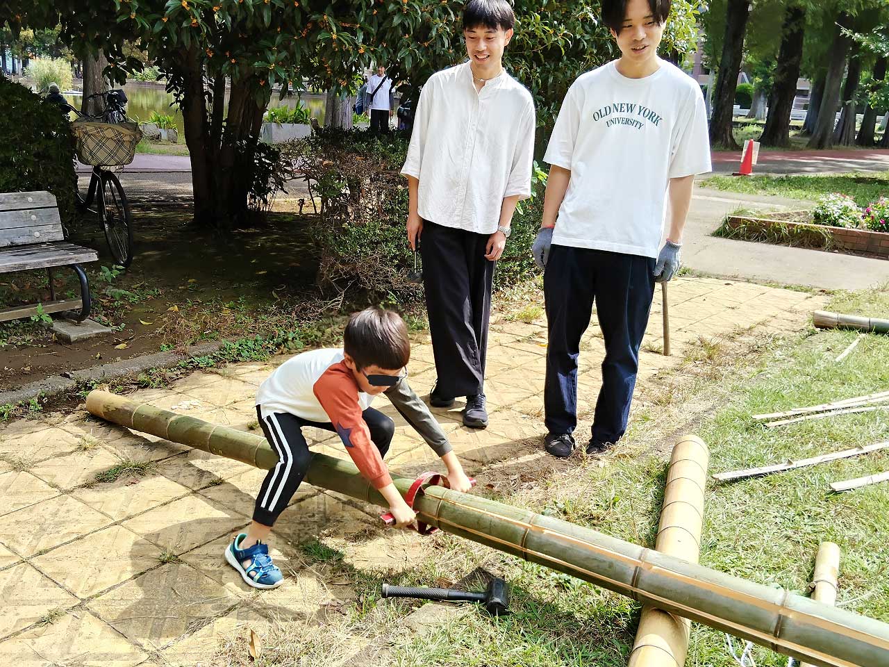 竹や、わら、すだれを使い、自由な形でパビリオンをつくります!